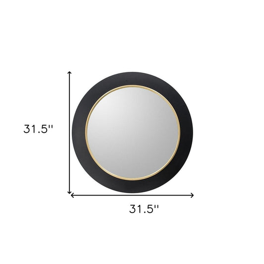 32" Black And Gold Lighted Round Metal Framed Accent Mirror