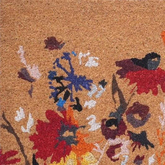 24" X 36" Natural Red and Yellow Coir Floral Outdoor Door Mat