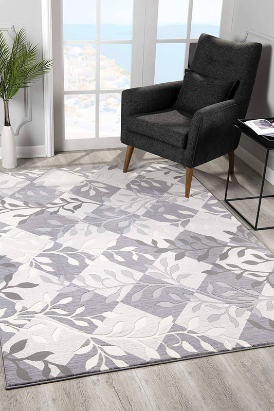 7' X 10' Gray Diamond And Vines Area Rug