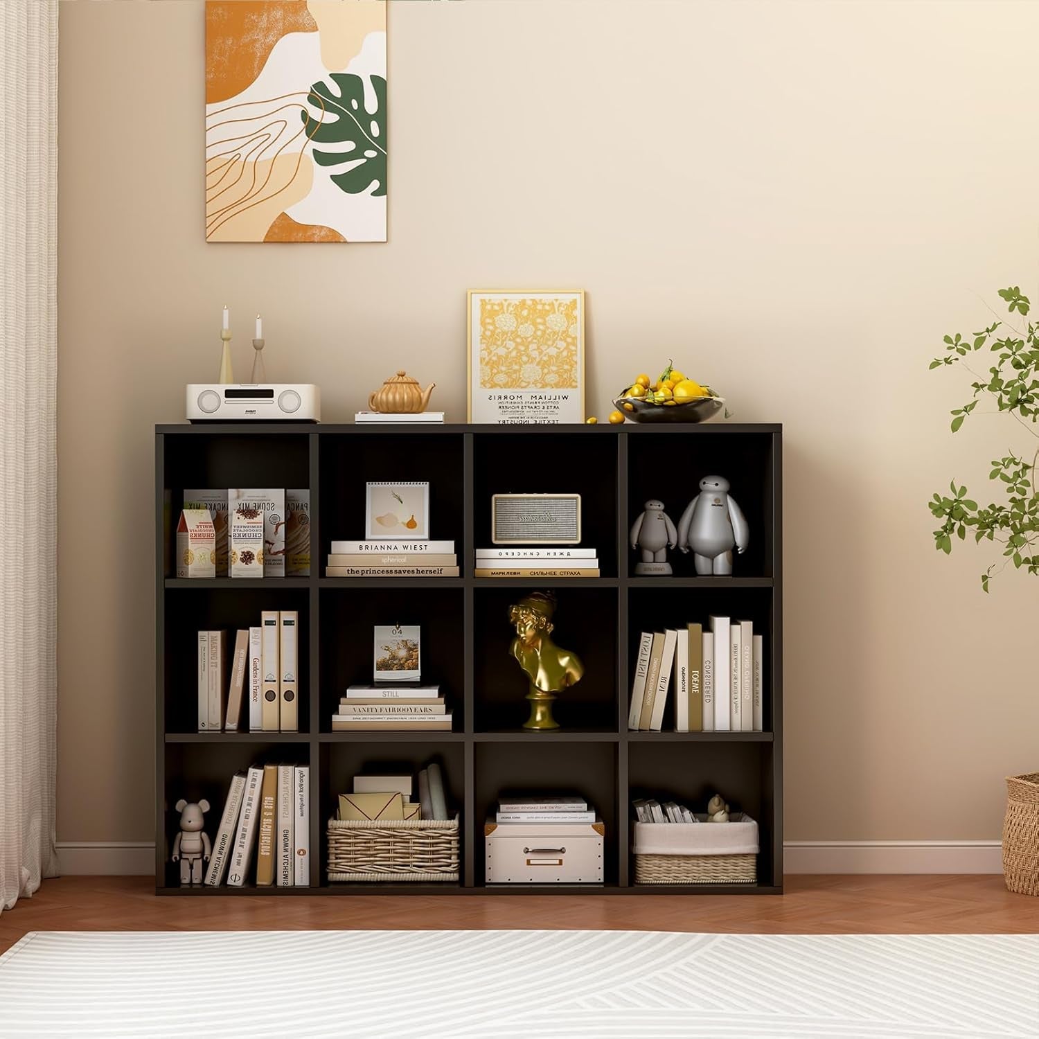 - WELL MADE - The design of this 3x4 cubes bookcase cleverly hides all the screws, no screw can be seen from the outside, making the whole storage cabinet look more tidy and advanced;
