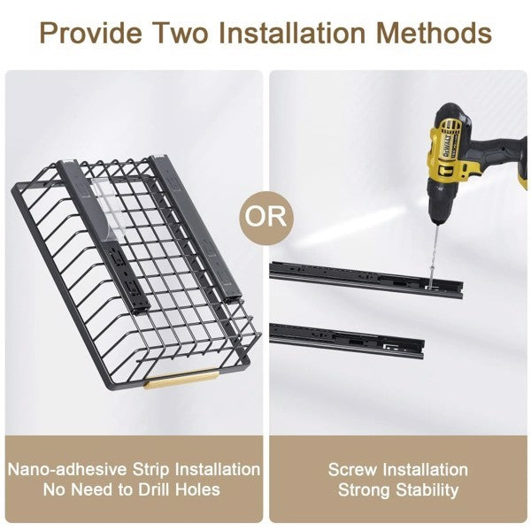 Pull Out Cabinet Organizers Is Perfect For Kitchen Cabinets, Allows You To Make The Most Of Your Cupboard Space And Provide Easy Access To All Your Canned Goods, Spices, Cleaning Supplies And Other Items. With A Simple-To-Install Roll Out Shelf, You Can Retrieve That One Item With Minimal Effort Due To The Sliding Rail. The Pull Out Pantry Shelves Is Also Ideal For Use In Bathrooms, Pantries, Or Laundry Rooms. Transform Your Kitchen Today With Our Adhesive Slide Out Drawers, And Enjoy A More Organized, Efficient, And Stylish Space!