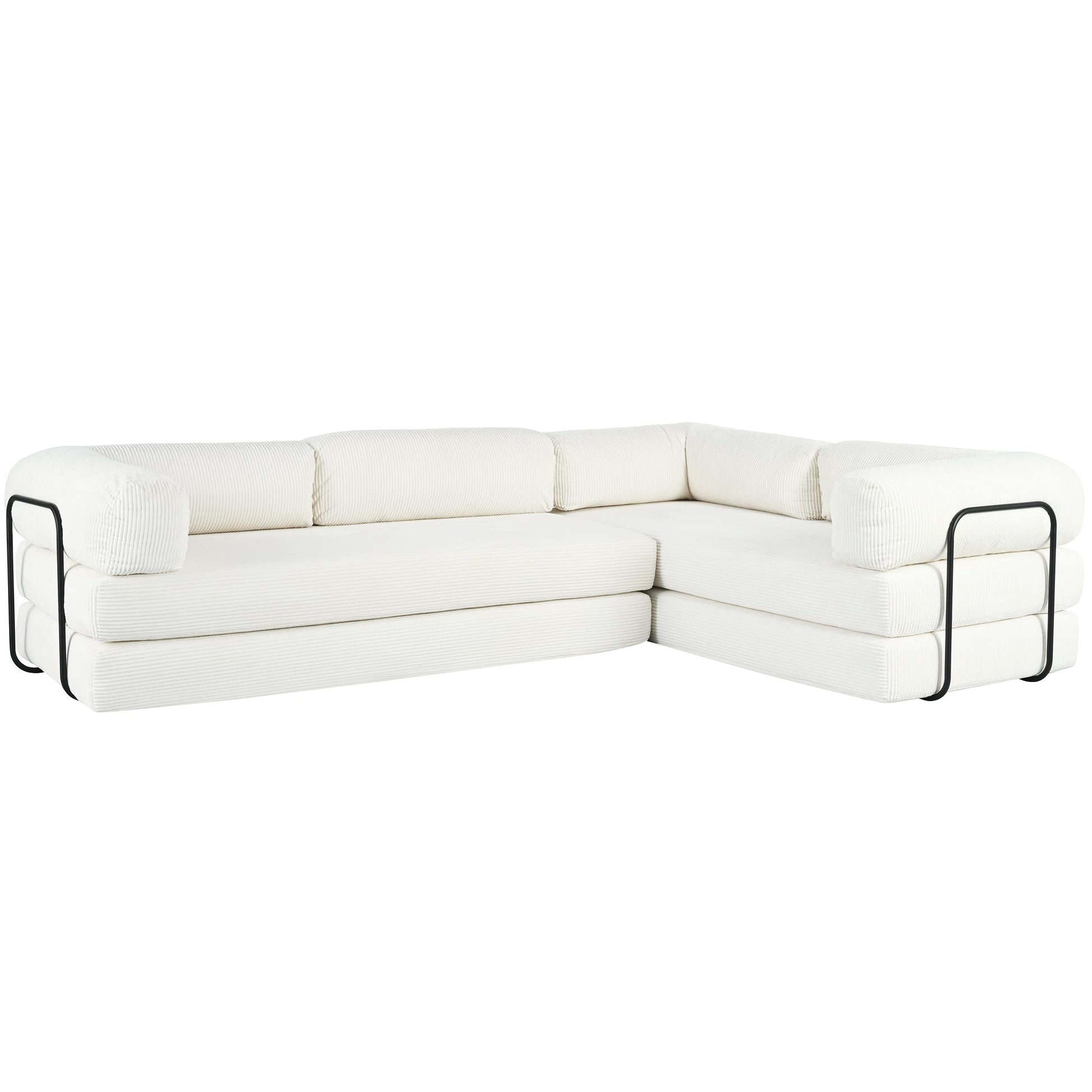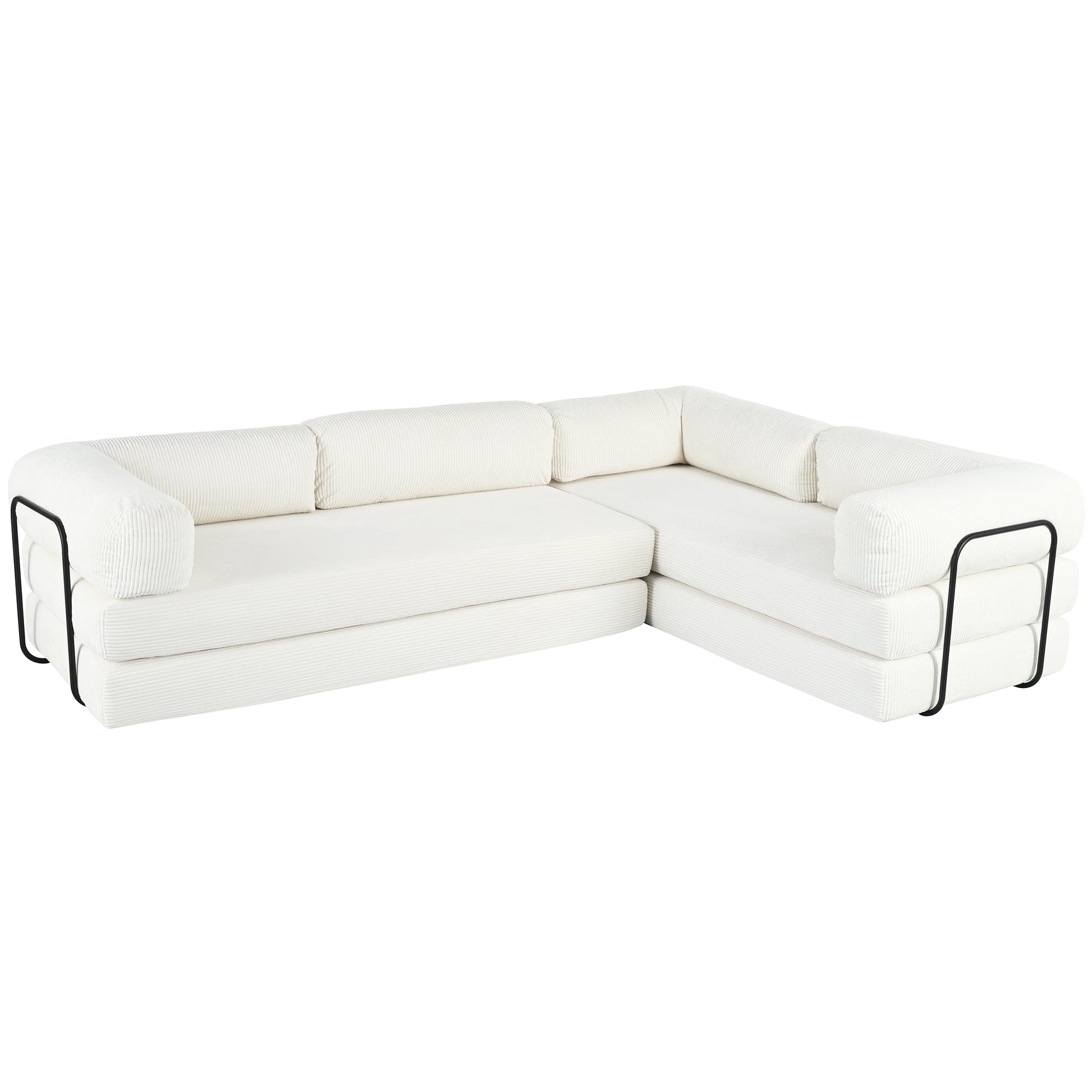 - [Versatile Configurations]:Featuring an innovative modular L-shaped design, this sofa bed combines 4 independent mattresses, 3 wedge cushions and 1 flat cushion. Easily reconfigure it into a chaise lounge, single bed, guest sofa or entertainment setup - perfect for movie nights, social gatherings or hosting overnight visitors.