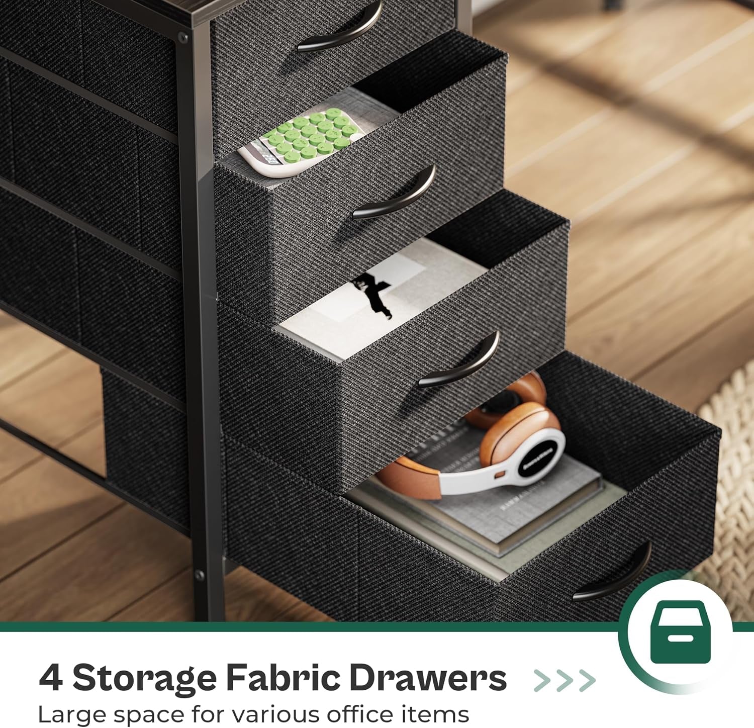 - Functional Drawers: Customize your workspace with four spacious fabric drawers that can be positioned on either side of the desk. Organize books, office supplies, or gaming accessories and maintain a clutter-free environment.