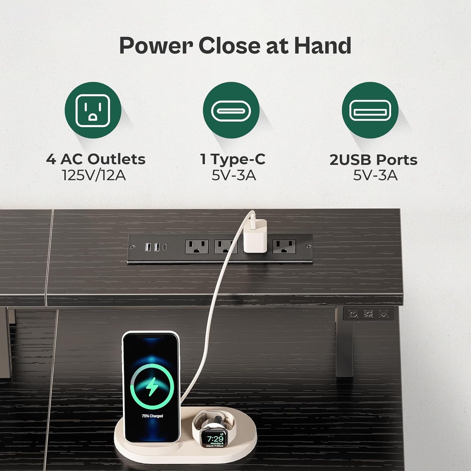 - Convenient Power Outlets: Keep your devices charged and ready with four AC outlets, two USB ports, and one Type-C port integrated into the monitor stand. Elevate your screen for better posture and reduce neck and back strain.