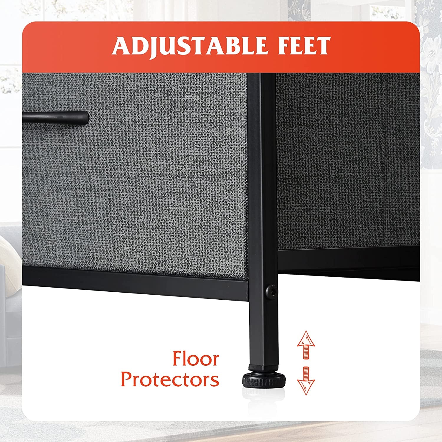 - 5 DRAWER CHEST: Features 5 removable foldable drawers; Easy pull handles help open and close the drawers smoothly; 4 adjustable feet protect your floor from scratches.