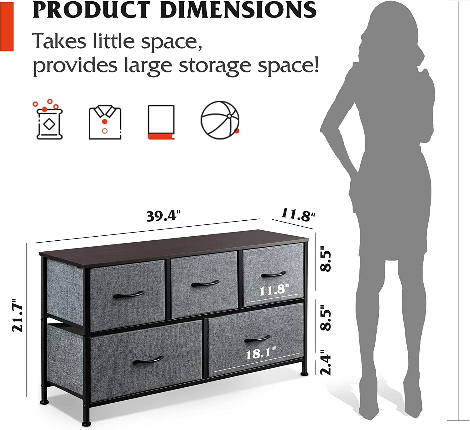 - EASY ASSEMBLY: This storage drawer unit is easy to assemble with hardware included; Assembly video has been uploaded for guidance. Overall dimensions: 39.4" L x 11.8" W x 21.7" H.