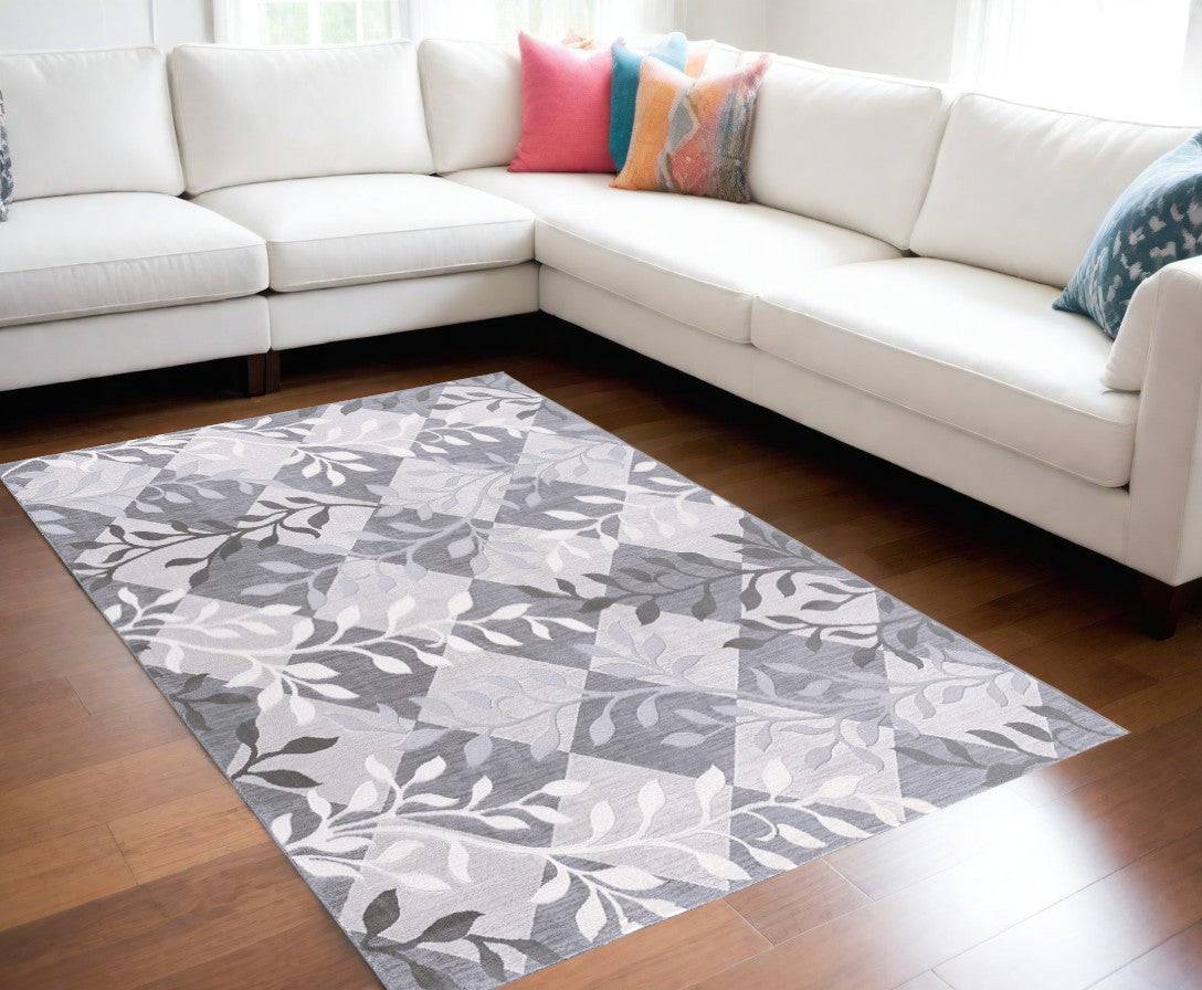 Beautifully ornamented in a botanical design with an elegant color palette, this Gray Diamond and Vines Area Rug will serve as a centerpiece in your living room. The eye-catching shades of gray-toned vines are gorgeously imprinted over a two-colored diamond pattern background for visual intrigue. Made to stand the test of fashion and function, this rug is woven in Turkey with premium quality polyester and cotton fibers to last for ages and resist stains while being super easy to maintain. The high-low pile gives it a textured look with a soft and cozy underfoot that would be loved by the guests and yourself. Roll this elegantly designed area rug on a hardwood or tile floor and watch the entire space stand out with a modern poise. 112” x 78” x 0.8”
