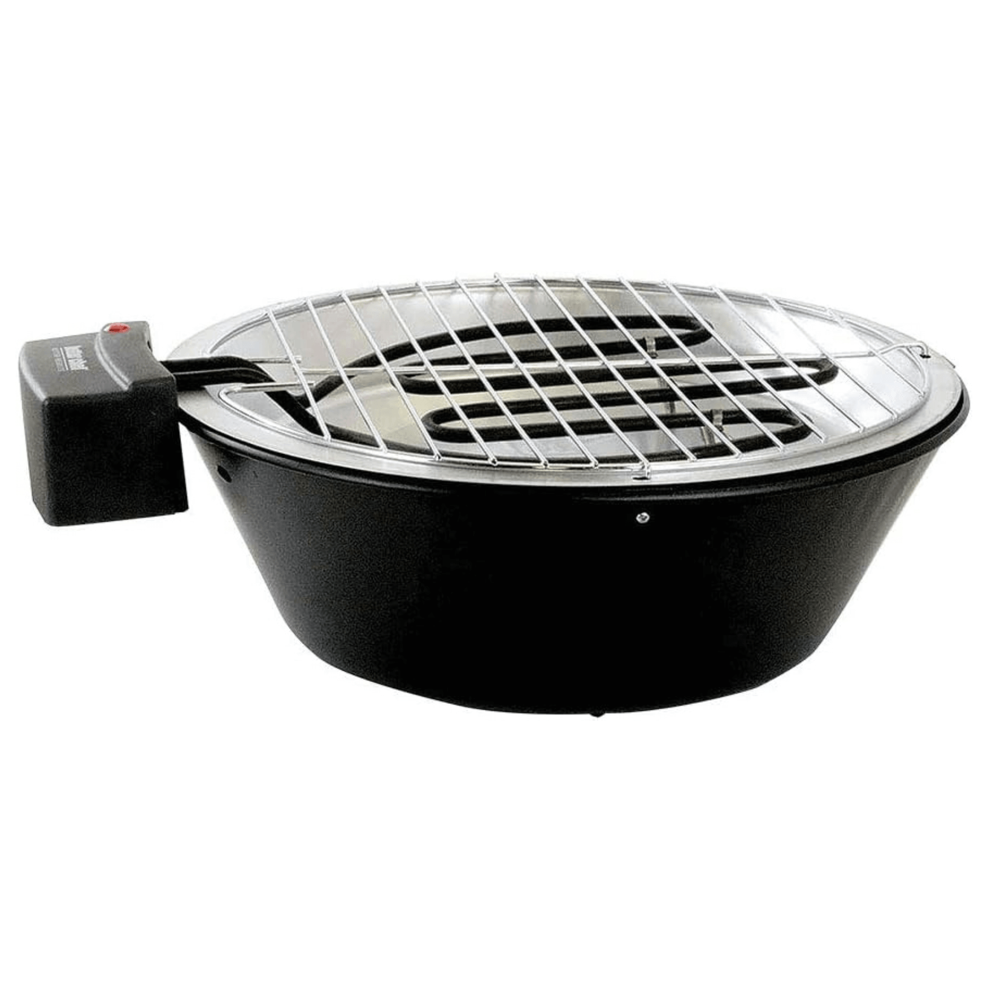 This Better Chef electric tabletop barbecue grill features a standard design that mimics the cooking style of a charcoal grill. With a 1000-Watt element, it efficiently cooks chops, ribs, burgers, and more, ensuring delicious results. Cleaning is made easy with the included metal drip pan, which only requires a small amount of water for cleanup. Additionally, the grill boasts stainless steel grates, adding durability and ease of maintenance to its features.