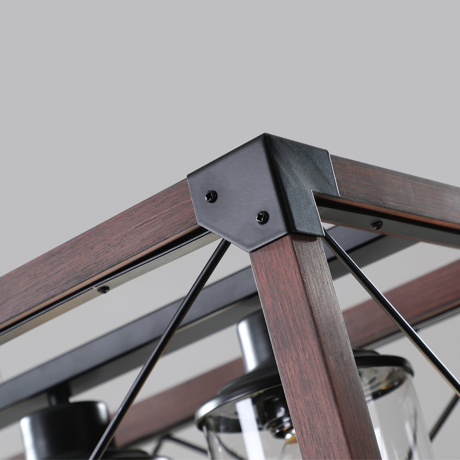 Farmhouse lighting: Kitchen island lamp is composed of redwood solid wood frame and ferrous and glass lampshade canopy. The slender black iron grille and 8 iron corner protectors highlight the industrial style of this restaurant's lighting fixtures, making it the perfect choice for kitchen island lighting. Size and wide application: Length: 31.5 inches, Width: 10.2 inches, Height: 33.5 inches. There is Four suspenders inside the box that allows for flexible adjustment of the hanging height of large chandeliers. Luminaires can be installed on flat, sloping, or arched ceilings. Bulb requirements: Maximum 5 bulbs , E26 base (excluding bulbs), 60W, compatible with LED, incandescent, CFL, and halogen. Wid ely used: The 5-light chandelier in farmhouses is very suitable for restaurants, kitchen islands, living rooms, entrances, foyers, corridors, porches, farmhouses, restaurants, bars, etc.