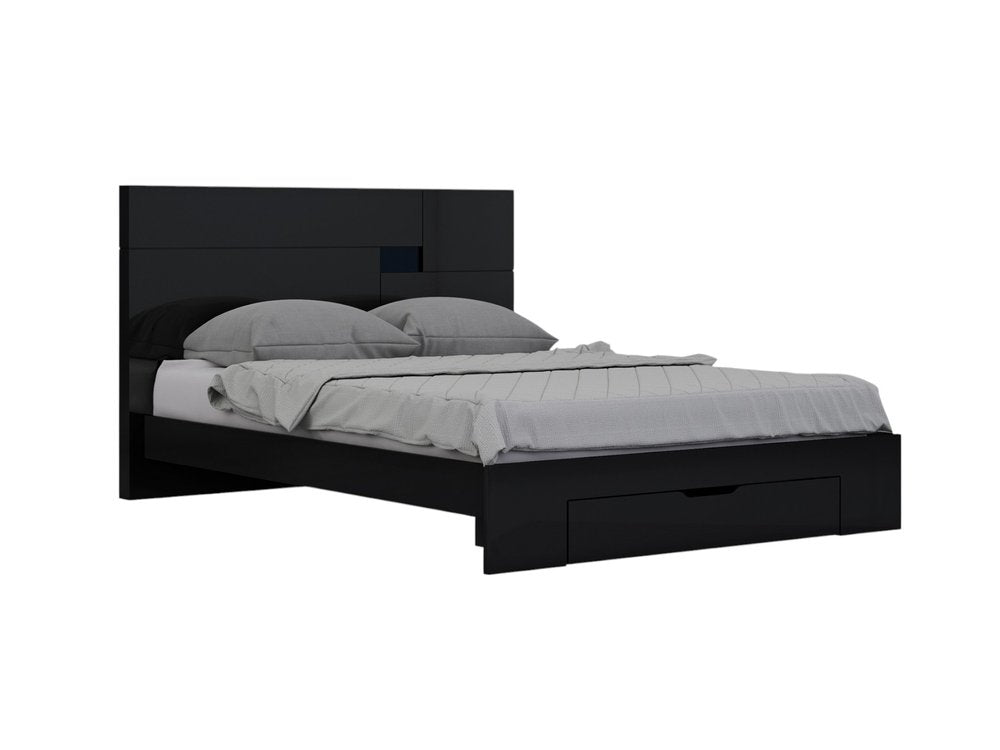 Upgrade your bedroom with this modern four-piece bedroom set featuring a sleek black solid wood design. Complete with a stylish bed, functional nightstand, spacious dresser, and a coordinating dresser mirror, this set offers both style and functionality in one package. The majority color of this set is a sophisticated black, adding a touch of elegance to your space. Each piece is carefully crafted to elevate your bedroom decor effortlessly. Bring a contemporary vibe to your sanctuary with this cohesive set that combines quality construction with chic aesthetics. Redefine your sleeping space with this black solid wood bedroom set with mirror. 43-inch H x 85-inch W x 72-inch D