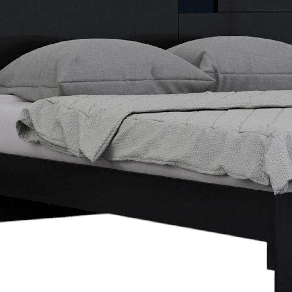 Four Piece Black Solid Wood Bedroom Set With Mirror