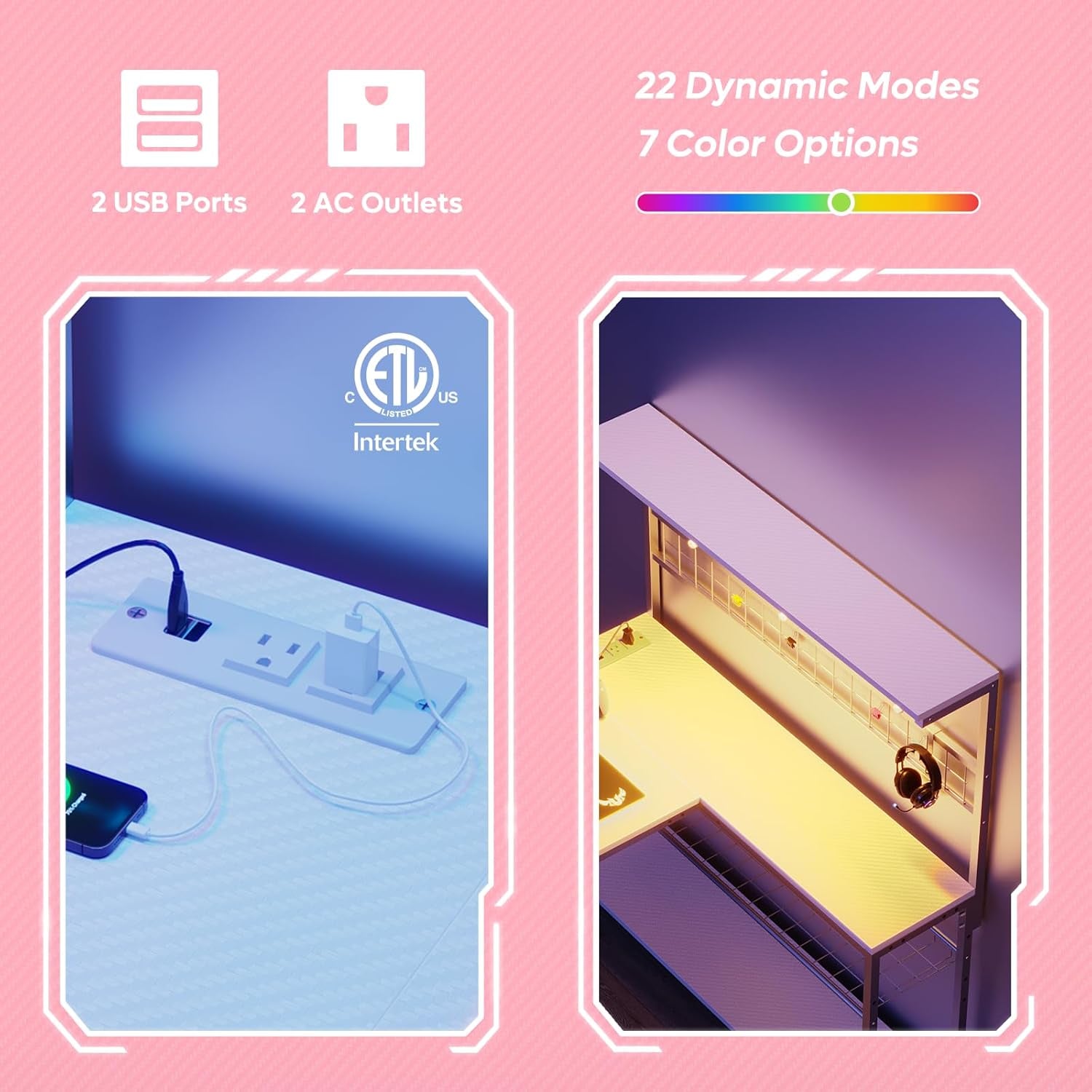 Gaming Desk 51" L-Shaped, with Power Outlets & LED Lights- 4 Tier