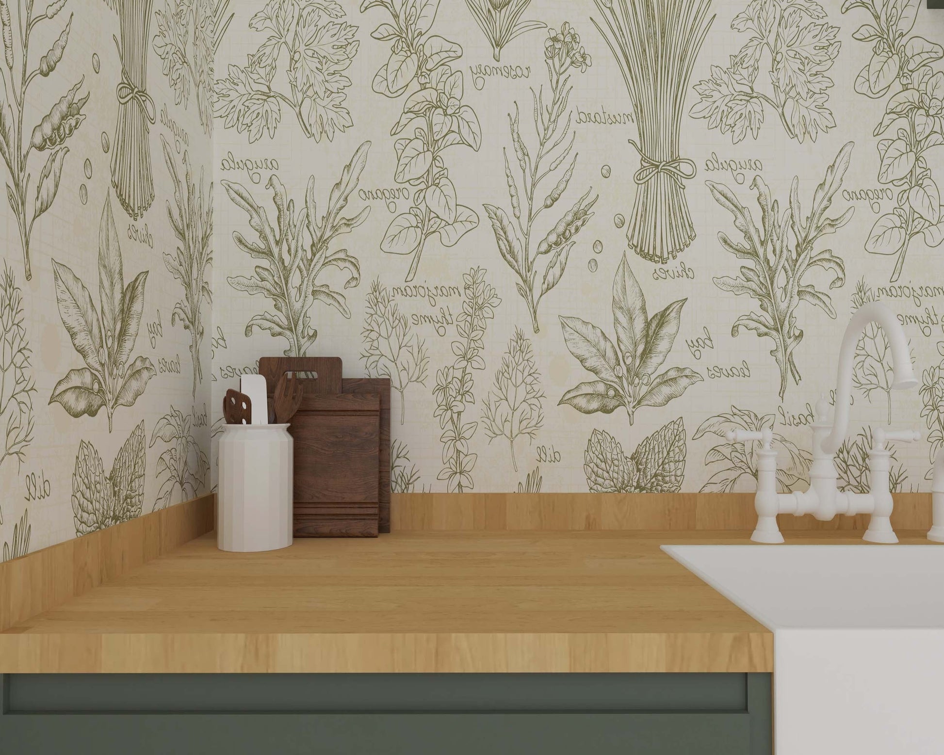 Elevate your kitchen's ambiance with our Kitchen Herbs Wallpaper. Adorn your space with the refreshing allure of herbs and greenery. Whether you're an avid chef or simply love the aroma of fresh herbs, this wallpaper is perfect for your kitchen. It's a unique blend of culinary charm and elegant design. The custom print ensures a one-of-a-kind addition to your space. Spice up your kitchen today with the Kitchen Herbs Wallpaper.
