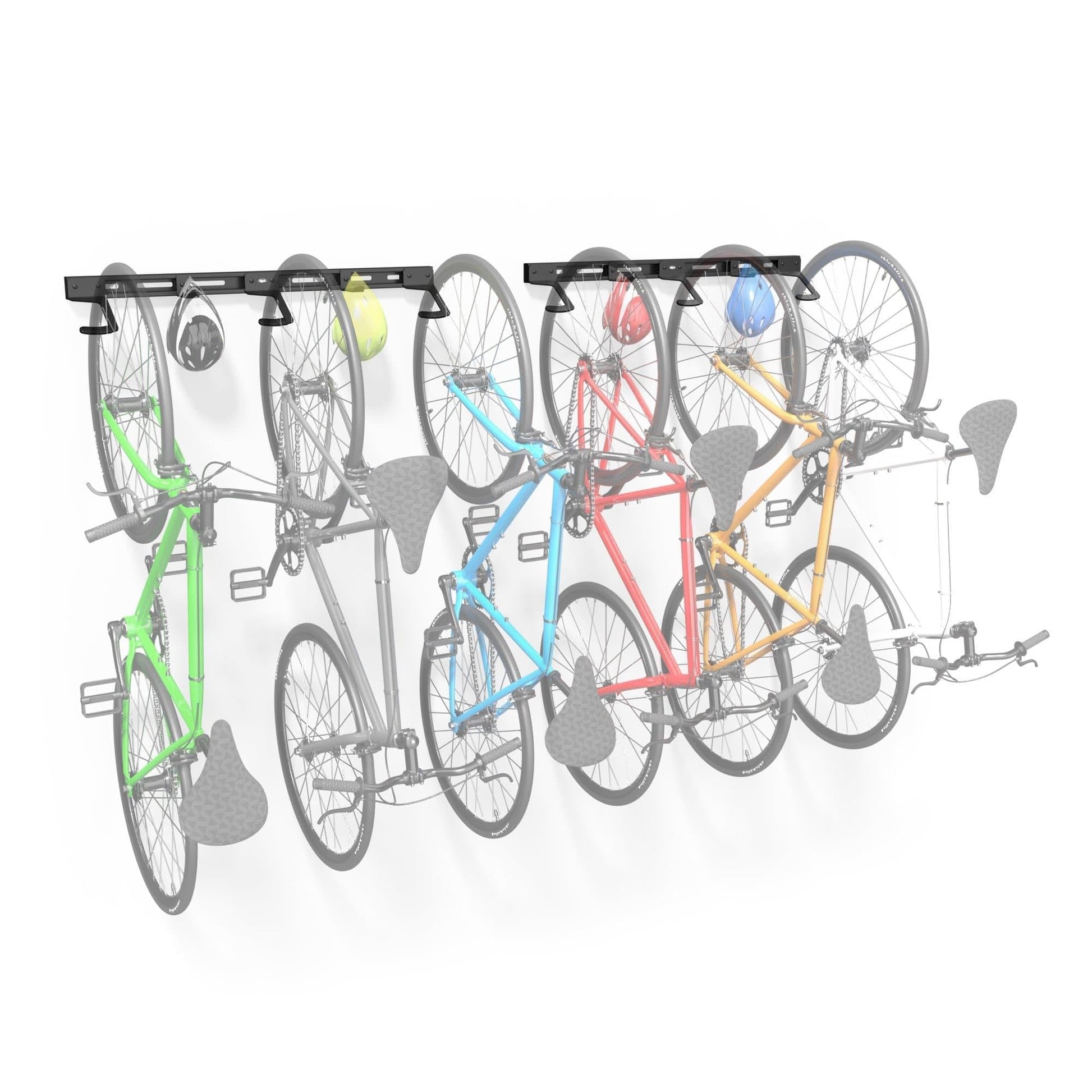 EASY TO INSTALL AND EASY TO USE - Installs in minutes with common tools. Includes all hardware. The unique mounting system allows you to position the bike hooks anywhere on the channel. The 6-Bike Wall Mounted Bike Rack includes 4 smaller bonus hooks to hang helmets and other accessories. No other wall mount bike rack system gives you this much flexibility.