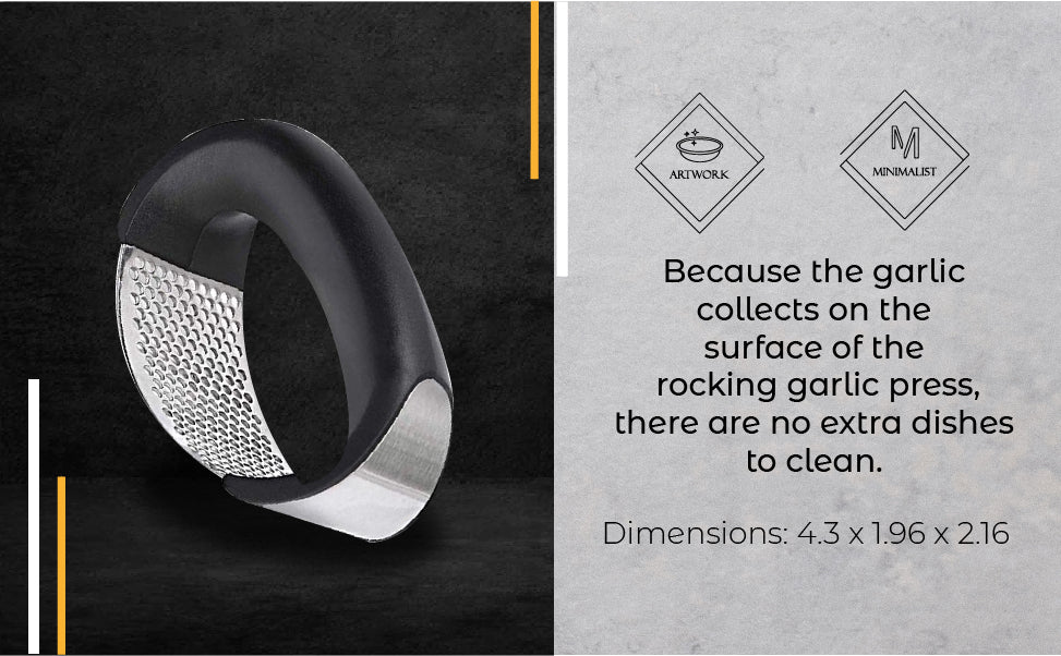 SUPER EASY CLEAN UP AND STORE - Because the garlic collects on the surface of the rocking garlic press, there are no extra dishes to clean.