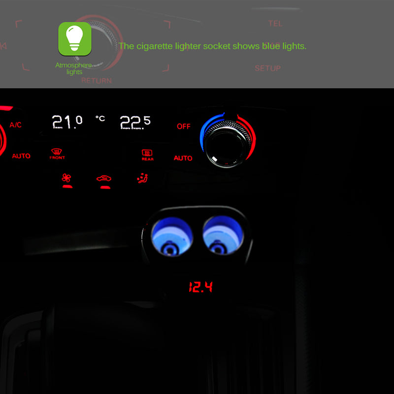 Blue LED light inside the cigarette lighter socket that makes you easy to find the ports in the dark.