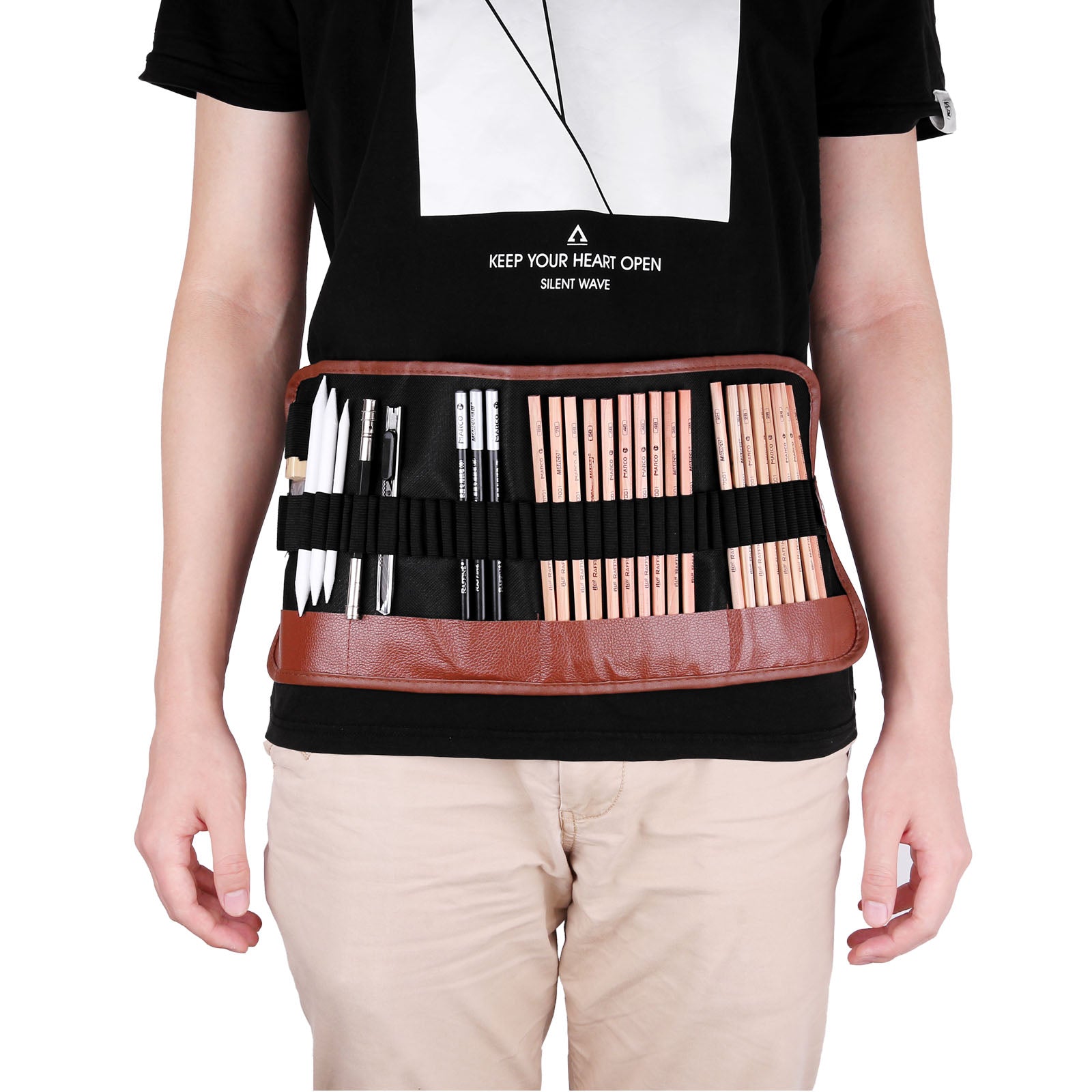 Great quality: Durable break-resistant metal craft knife + Stylish, lightweight, well-made canvas roll bag + Premium sharpened Pencils + Metal double-end pencil extender.