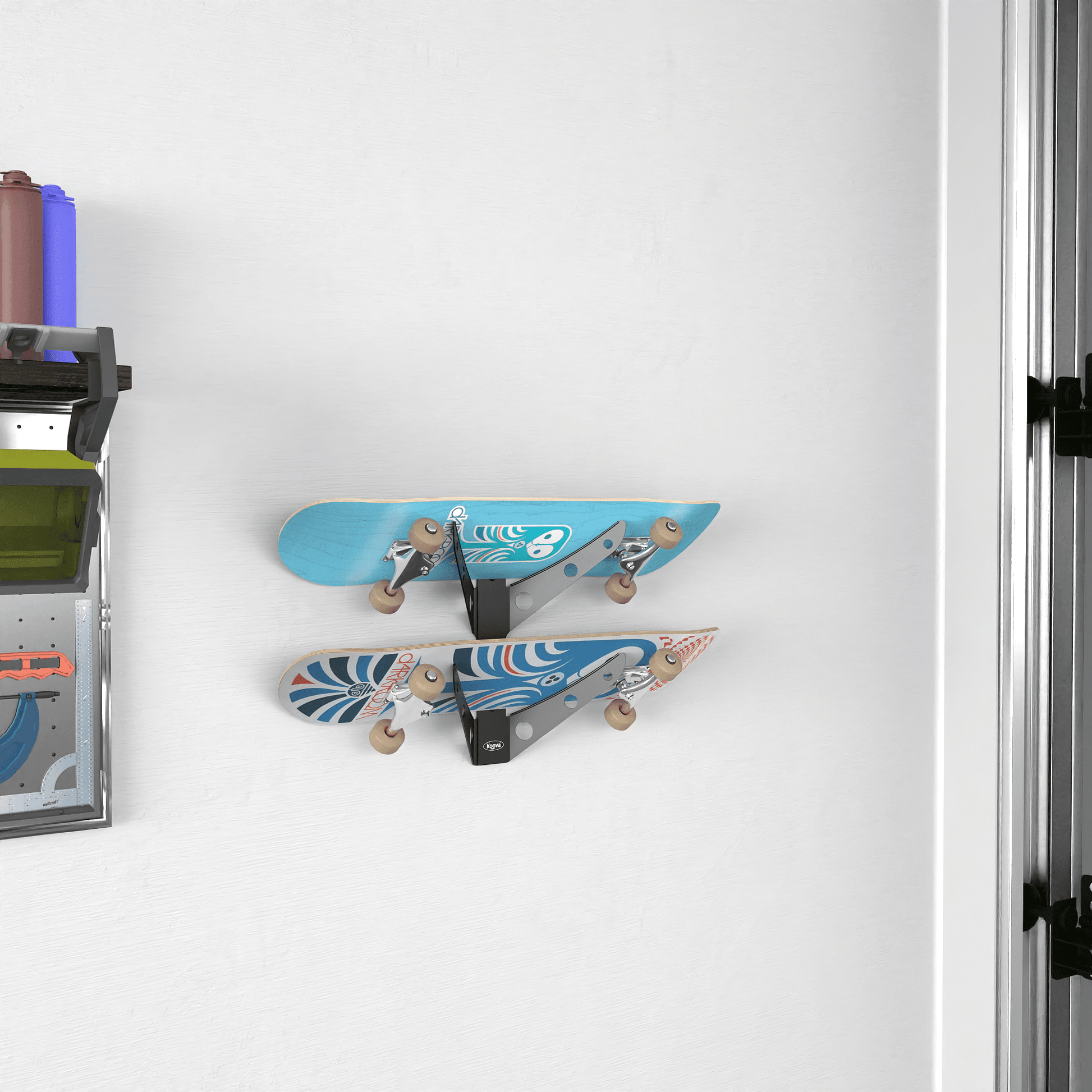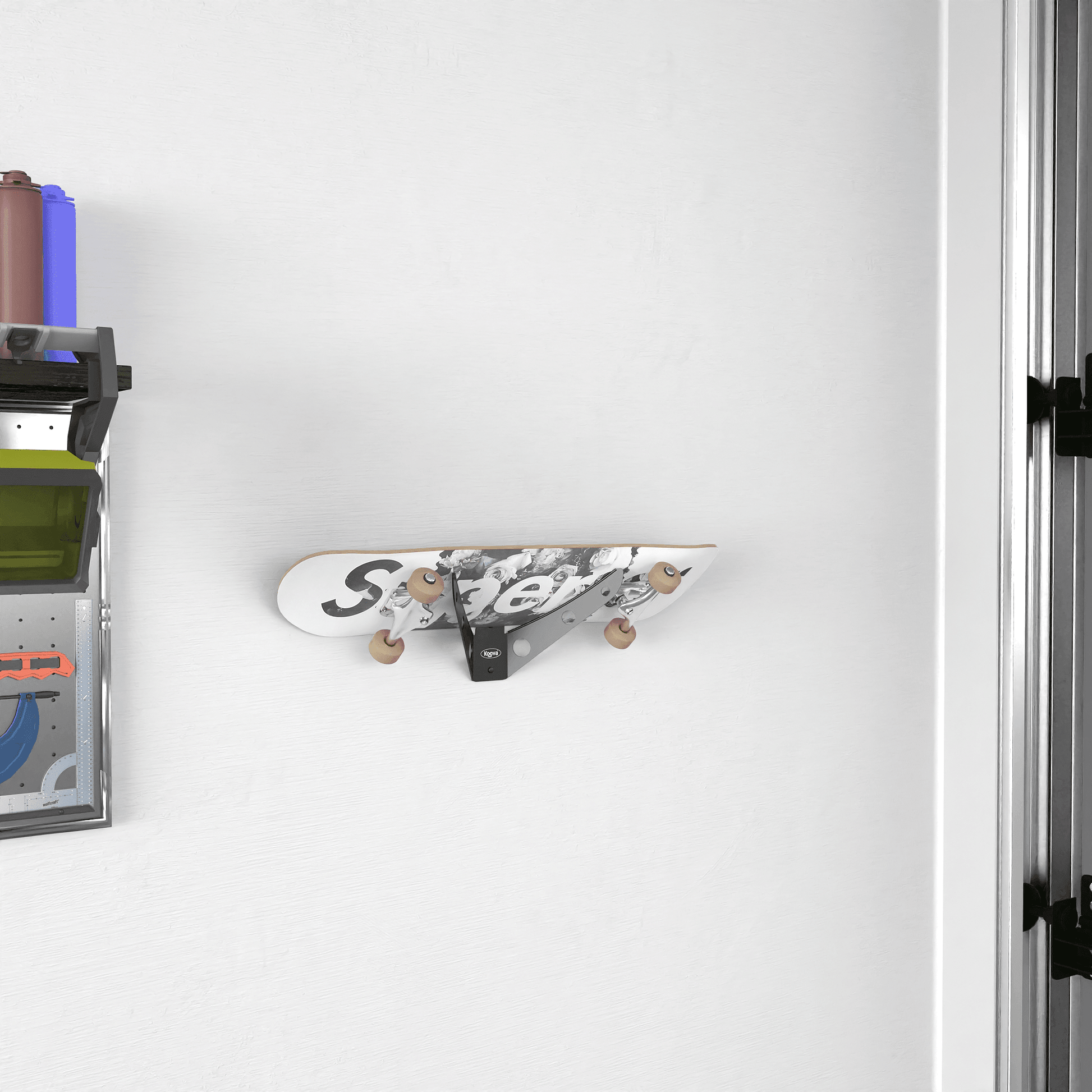 - DURABLE STEEL FRAME CONSTRUCTION - Far stronger and more resilient than plastic our skateboard holder is easy to mount in a garage, dorm room, apartment, or other personal space where you want to keep a board ready for grab-and-go action.