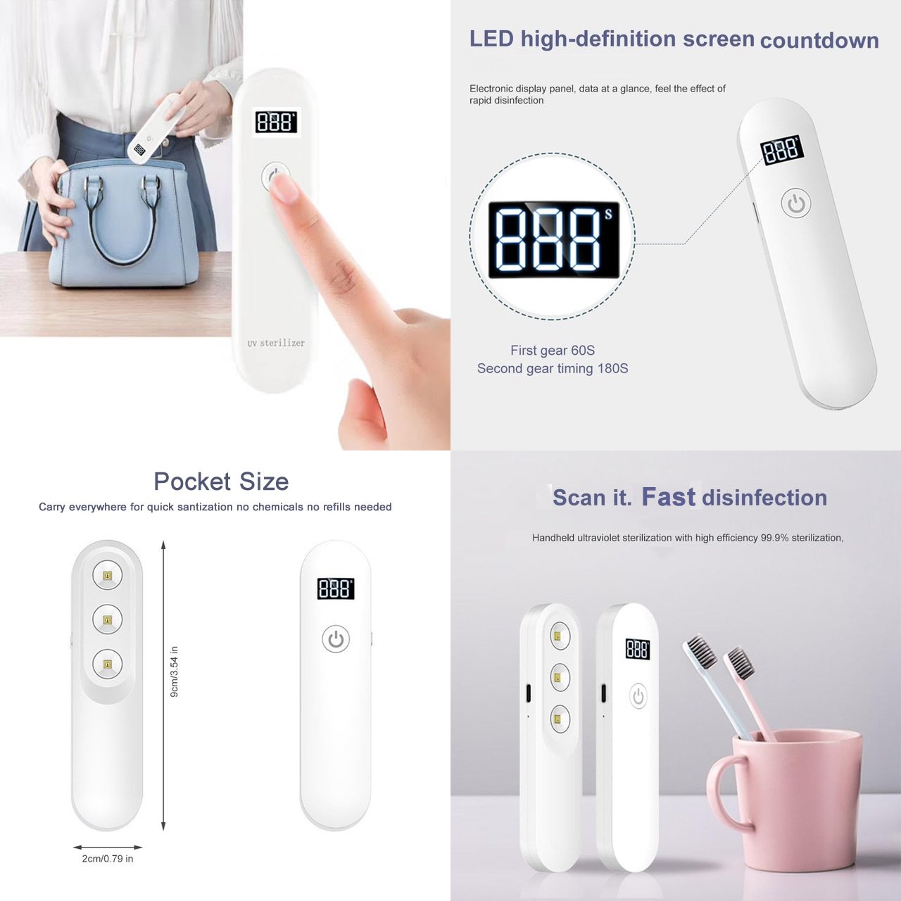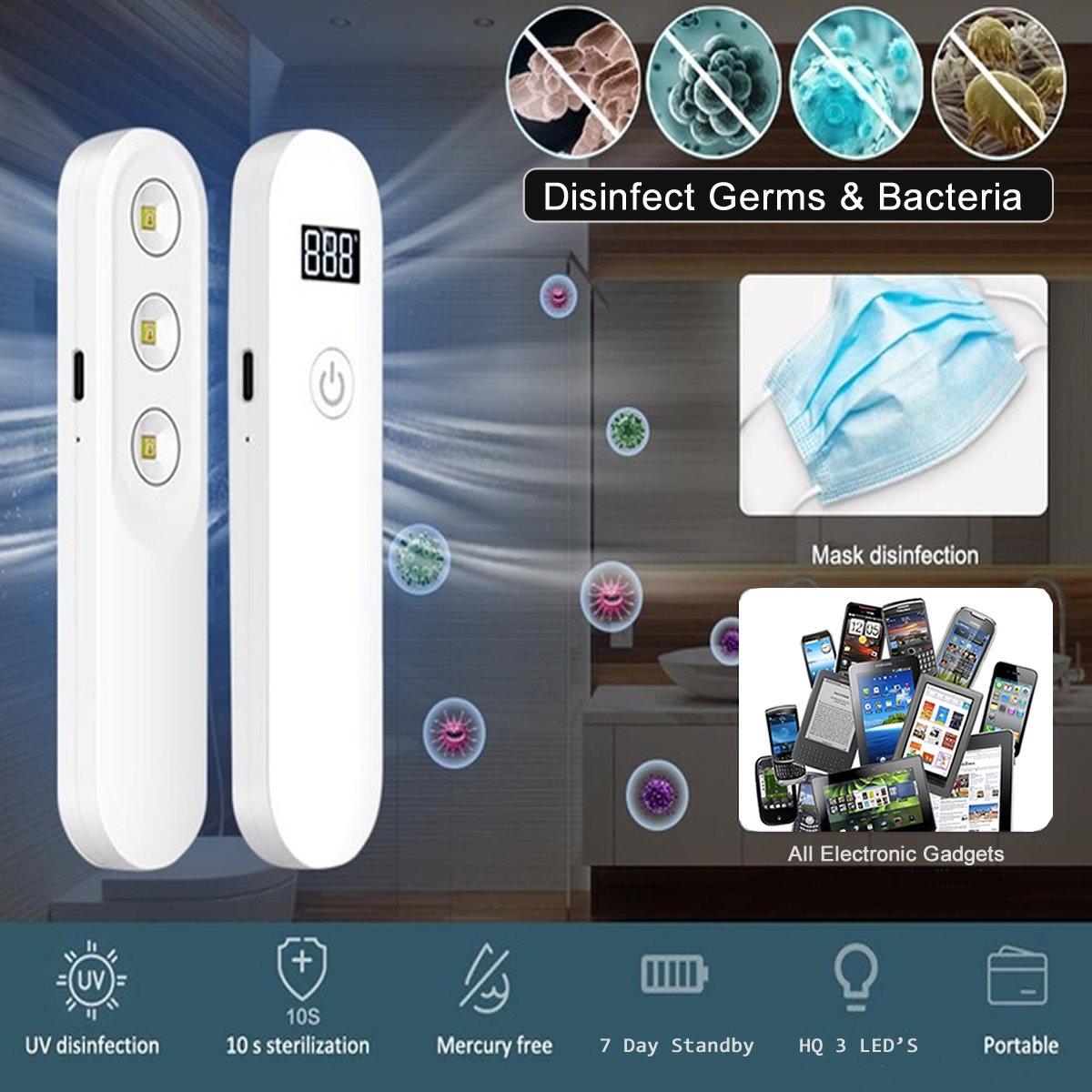 Always carry this handheld, portable Mini Ultraviolet bar UV Light that can eliminate and disinfect germs and viruses in seconds, which can not be seen with the naked eyes but they are pretty much there practically on everything from our phones, iPads, and laptops to kid's toys, remote controls, and door handles. Easy to charge with the built-in rechargeable battery and easy to carry with you, it's charge lasts for 5 to 6 hours. Take it with you anywhere you go and sanitize in 10 seconds the car seats, steering wheels, elevator buttons even the toilet seats in the hotels, theaters or any other public areas.