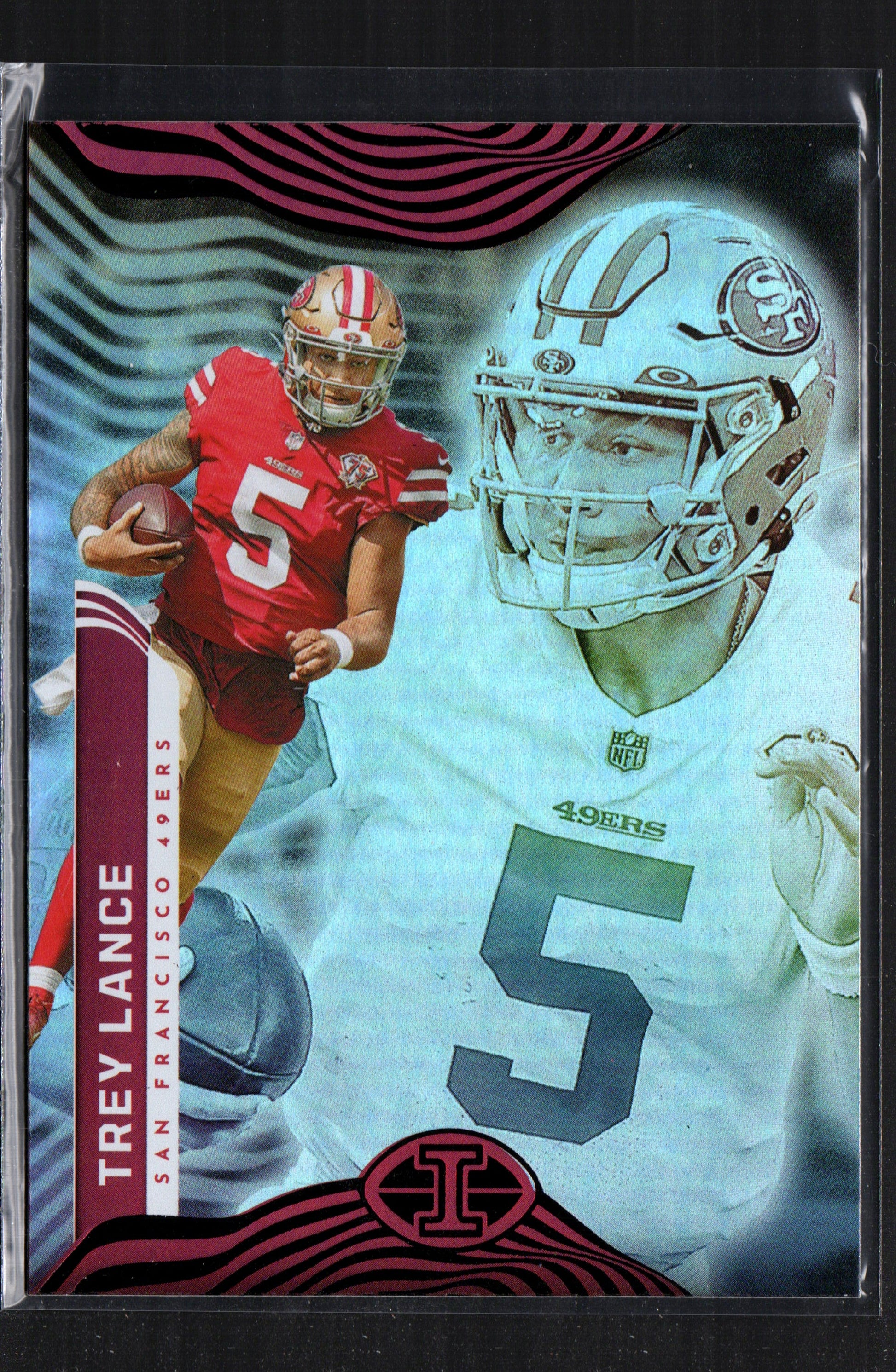 This trading card features Trey Lance from the San Francisco 49ers, with his name and team logo prominently displayed on the front. The card is from the 2022 Panini Illusions set, and is card number 88. It is a standard size sports trading card, manufactured by Panini in the United States, with English language text. It is perfect for collectors of National Football League (NFL) memorabilia, or fans of Trey Lance. The card is not autographed, but still highly sought after by collectors. Get your hands on this 2022 card of Trey Lance, and add it to your collection today!