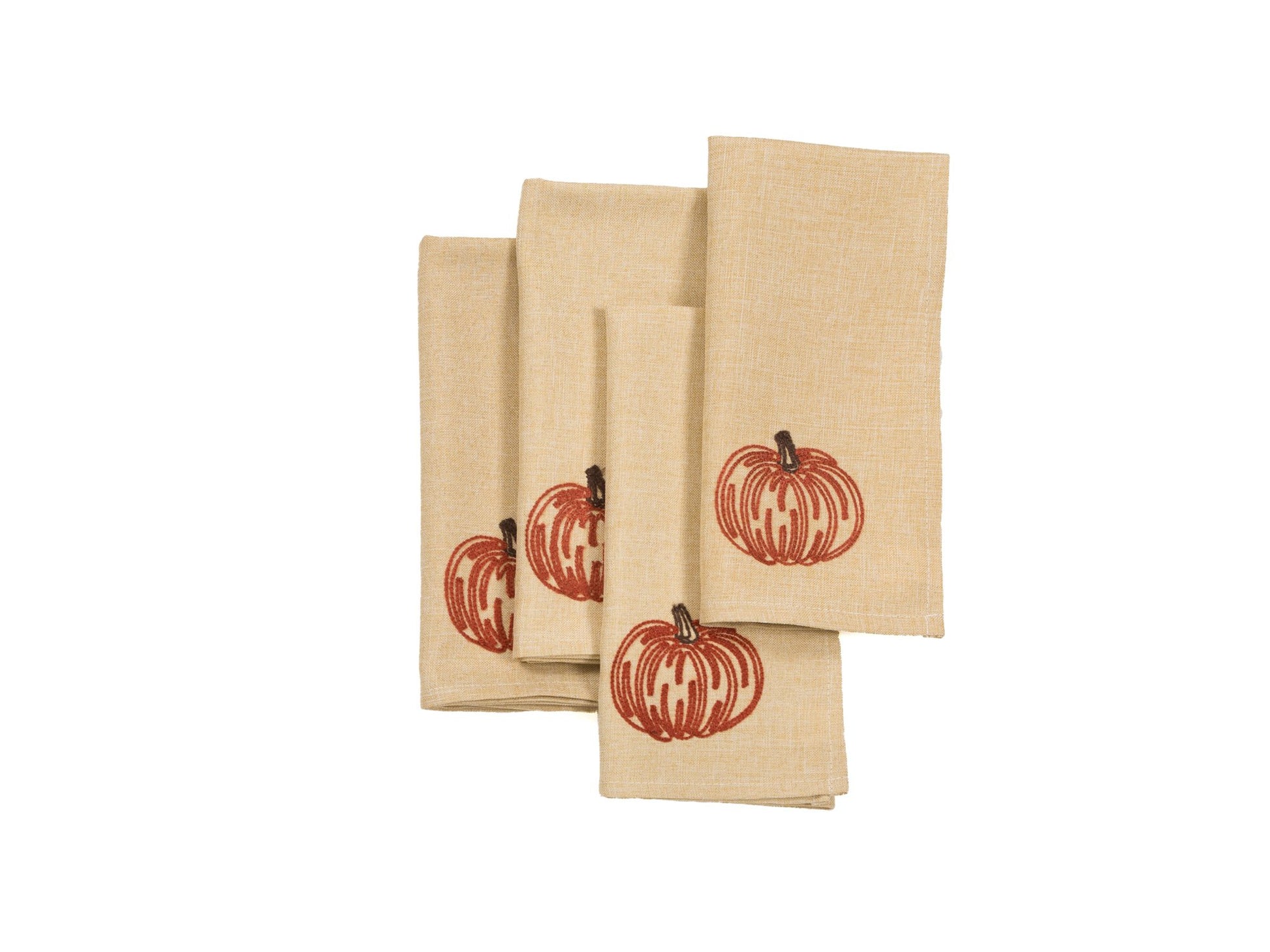 Havest pumpkins in bountiful variaty at festive touch to you home , Hand Rendered cutwork all over. Your table will be perfectly accented for your harvest and Thankgiving gatherings with these warm and inviting fall linens!